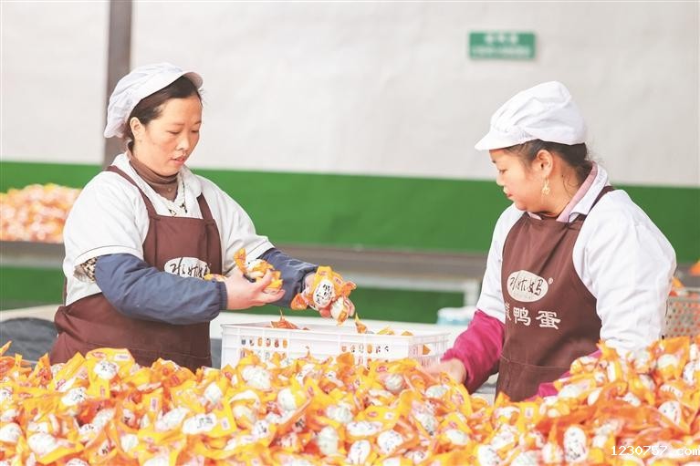 2023年,三穗鸭出栏726.3万羽,鸭蛋产量13800吨,蛋制品加工1.5亿枚,屠宰加工鸭480万羽,产业综合产值达12亿元。图为三穗县一家鸭蛋制品企业生产车间正忙着赶制年货订单。龙兴伟 摄(贵州图片库发)