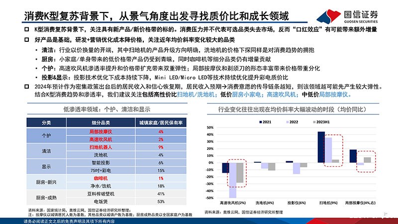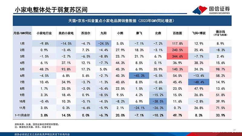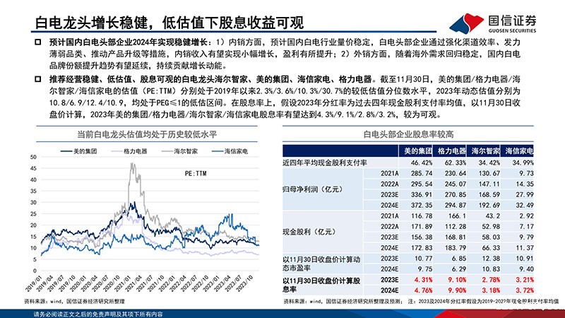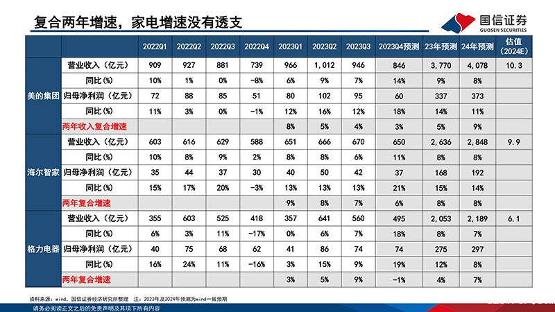 • 小家电(-6%)、厨电(-9%):估值相对稳定但行业需求不振导致业绩端波动较大